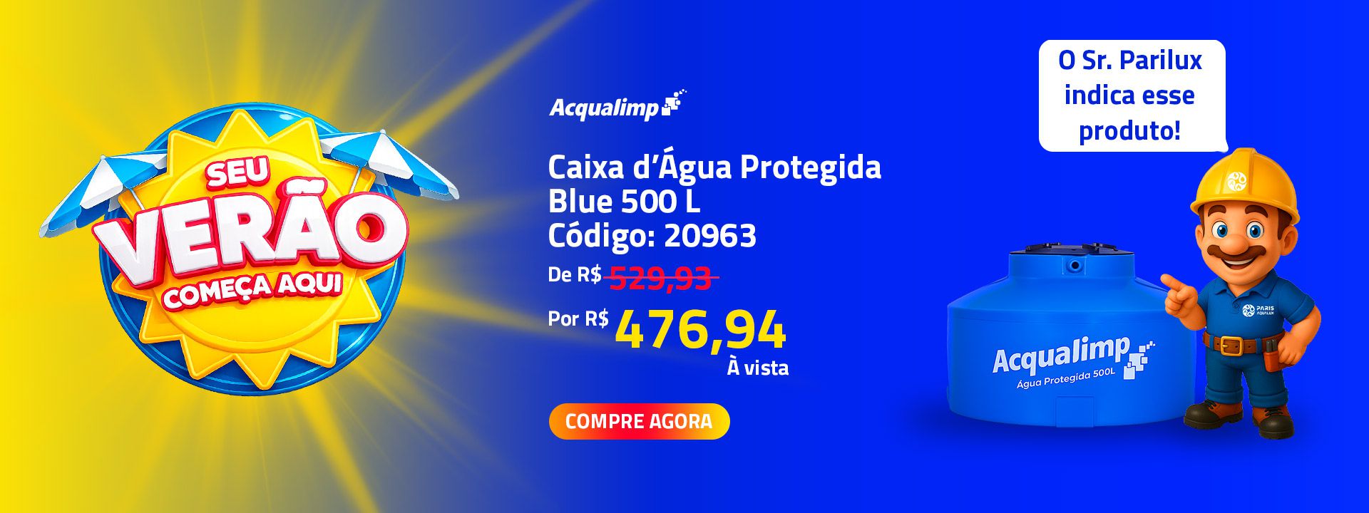 ou 12x de R$ 32,19 com jurosCaixa Agua Protegida Blue 500 L Acqualimp