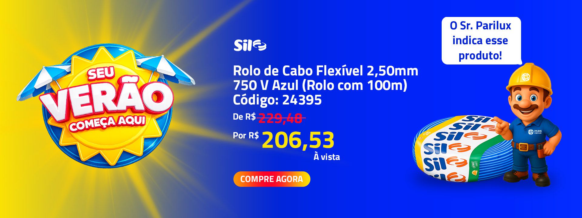 ou 12x de R$ 26,98 com jurosrolo cabo flexivel 02.50mm 750v azul 100mt - sil